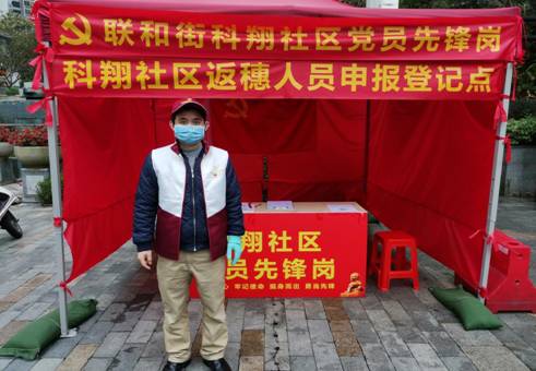 2月14日,党员廖泳湖参加单位所在社区黄埔区联和街道科翔社区防疫志愿活动,协助进行体温检测,指引返穗居民按要求填写个人情况登记表,派发宣传单张等。